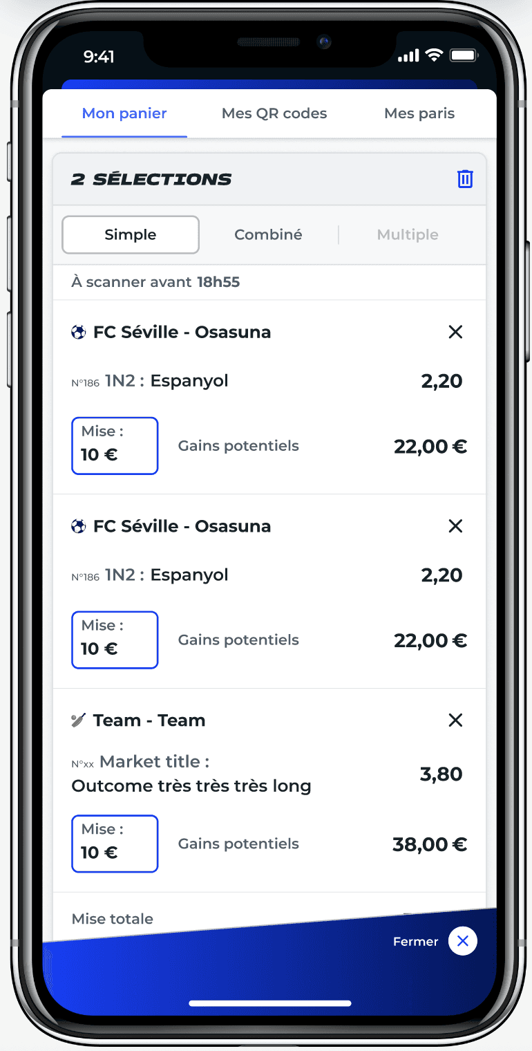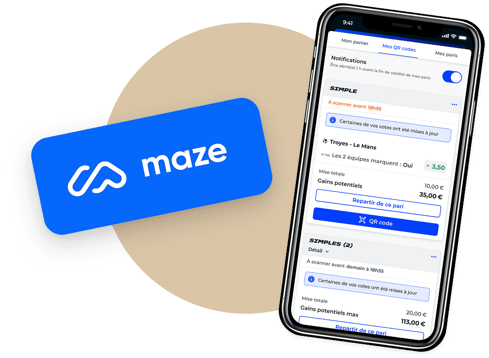 players prepare their bets on the mobile app (selecting odds, setting a stake, validating their bet), then generate a QR code and pay in a tobacco shop. Between the moment they validate their bet on the app and the moment the ticket is printed in store, odds can move up or down based on the live market.