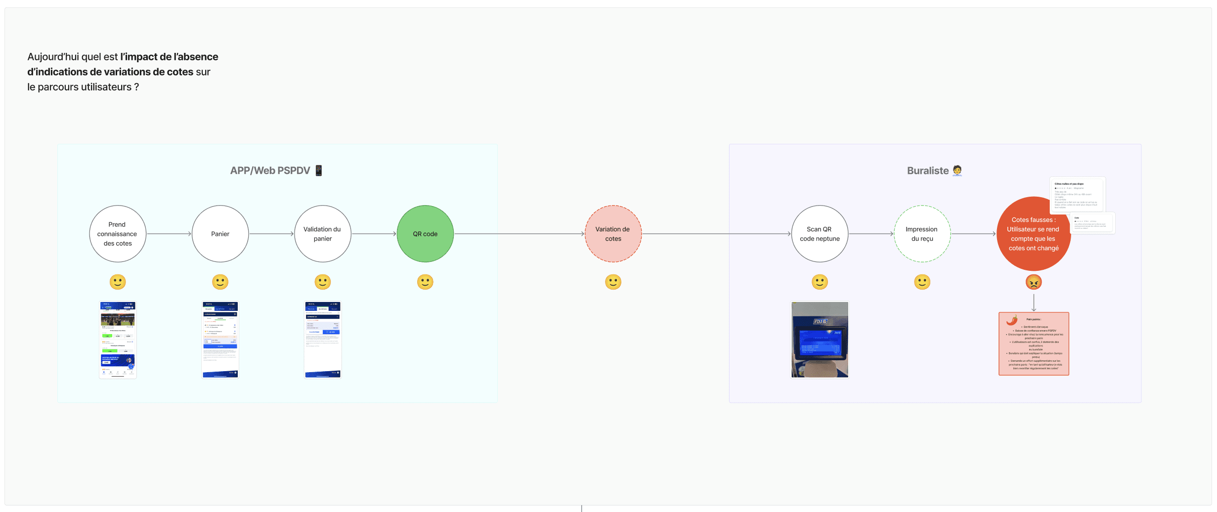 After analysing the user journey from odds selection to QR code generation, I identified two critical screens where users must be warned about odds changes.